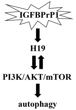 在這項研究中,研究團隊首先建立膽總管結扎(Bile duct ligation,BDL)誘導的小鼠肝纖維化模型,確定肝纖維化形成過程中IGFBPrP1與H19、自噬的表達變化。結果顯示IGFBPrP1與H19、自噬呈伴隨性增高。接著研究團隊分別將腺病毒介導的IGFBPrP1(AdIGFBPrP1)在體內通過小鼠尾靜脈注射轉染C57BL/6小鼠肝組織,同時在體外轉染JS-1(小鼠肝星狀細胞株),通過qRT-PCR、Western blotting、免疫組織化學、透射電子顯微鏡等分子生物學實驗證實,IGFBPrP1激發了自噬的表達。為了明確自噬對IGFBPrP1誘導的HSCs活化及肝纖維化形成的調控作用,分別在體內和體外給予自噬抑制劑LY294002和自噬誘導劑雷帕霉素干預,實驗觀察到減少自噬可以抑制IGFBPrP1誘導的HSCs活化,ECM生成減少,肝纖維化減弱;增加自噬可以促進IGFBPrP1誘導的HSCs活化,ECM生成增多,肝纖維化加重。由于LY294002又是PI3K抑制劑,雷帕霉素是mTOR抑制劑,研究團隊同時證實PI3K/AKT/mTOR信號通路參與了IGFBPrP1對自噬的調控。另外,通過qRT-PCR、原位雜交等發現IGFBPrP1也促進了H19的表達,給予LY294002和雷帕霉素后發現IGFBPrP1可通過PI3K/AKT/mTOR信號通路促進H19的表達。最后,研究團隊在AdIGFBPrP1轉染JS-1的基礎上,將H19上調或下調,發現H19可促進IGFBPrP1誘導的HSCs自噬及活化,給予LY294002和雷帕霉素后發現PI3K/AKT/mTOR參與了其中的調控。最后得出的分子調節機制是IGFBPrP1通過PI3K/AKT/mTOR和H19的相互調控促進HSCs自噬及活化,進而促進肝纖維化形成。