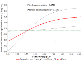 圖2. 2-OHNAP與出生體重和CI指數之間的劑量反應關系