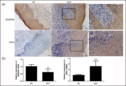 OLP病損中MASPIN表達降低,IKKα和炎性細胞因子表達升高