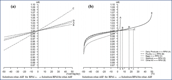 圖2. 采用TSA和CoTSA分析不同動物性食物間等量替代結果
