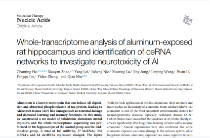 牛僑教授團隊在《Molecular Therapy-Nucleic Acid》發文:利用全轉錄組測序揭示預防和治療鋁神經毒性作用的生物靶點