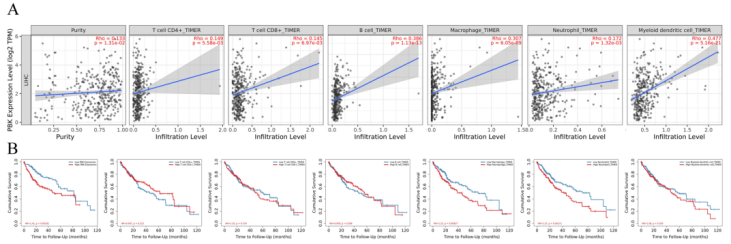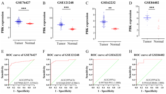 該研究經過多個獨立數據庫證實,PBK在肝細胞肝癌組織中表達極高,且PBK高表達組患者的預后較差,是影響患者預后的獨立危險因素。另外,本研究首次分析了PBK的表達與肝細胞肝癌患者臨床病理特征的關系,首次通過ROC曲線確定了PBK在肝細胞肝癌患者中的診斷價值,特別是首次報道了PBK的表達與腫瘤浸潤淋巴細胞、趨化因子和受體之間的相關性。這些研究結果有助于我們建立以PBK為核心的肝細胞肝癌診療研究方向,為我們后續研究做理論基礎。