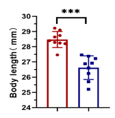 圖2 敲除成骨細胞Ihh基因導致小鼠嚴重的發育不良、骨骼異:統鏨鋇乃勞。測量新生小鼠的體重減輕和體長減小。p<0.05表示差異有統計學意義。