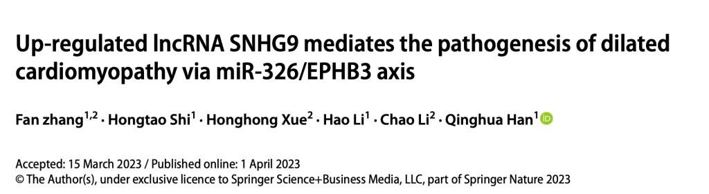 2023年4月1日,c7c7.app第一醫院韓清華課題組在Journal of Thrombosis and Thrombolysis雜志發表了題為“Up?regulated lncRNA SNHG9 mediates the pathogenesis of dilated cardiomyopathy via miR?326/EPHB3 axis”的研究論文,發現長鏈非編碼RNASNHG9在擴張型心肌病發生發展中的作用。