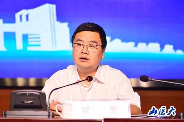 解軍在總結(jié)講話中指出,今天的會議既是學(xué)科建設(shè)工作會,也是第五輪學(xué)科評估的動員會,各院系各部門要貫徹落實好會議精神,做好學(xué)科學(xué)位點建設(shè)和第五輪學(xué)科評估的迎評工作。他就今后的工作提出三點要求:一是高度重視學(xué)科學(xué)位點建設(shè),要把學(xué)科建設(shè)好壞作為提高各部門工作能力的重要抓手和主要標(biāo)準(zhǔn);二是研究生學(xué)院要牽頭成立學(xué)科評估工作組,相關(guān)院系成立學(xué)科評估辦公室,做好學(xué)科評估方案的制定和落實;三是強(qiáng)化責(zé)任,各部門、院系要召開黨政聯(lián)席會專題部署學(xué)科評估工作,并把學(xué)科評估成效作為年終部門考核的硬指標(biāo)。會議號召,全校上下要以習(xí)近平新時代中國特色社會主義思想為指導(dǎo),在校黨委的堅強(qiáng)領(lǐng)導(dǎo)下 “對標(biāo)一流”,發(fā)揚“求實精進(jìn)、堅韌弘毅”的山醫(yī)精神,落實立德樹人根本任務(wù),以昂揚的斗志、實干的激情,為把我校建設(shè)成特色鮮明的高水平研究教學(xué)型醫(yī)科大學(xué)共同奮斗。