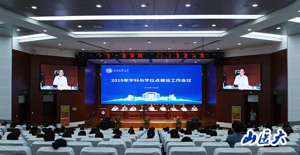 7月8日下午,我校2019年學(xué)科與學(xué)位點建設(shè)工作會議在中都校區(qū)教學(xué)辦公樓一層報告廳召開。大會主題為“爭創(chuàng)一流學(xué)科,助力健康山西,為建設(shè)高水平研究教學(xué)型醫(yī)科大學(xué)努力奮斗”。出席大會的有校黨政領(lǐng)導(dǎo)班子成員,校學(xué)術(shù)委員會委員、校學(xué)位評定委員會委員,第一、第二醫(yī)院分管領(lǐng)導(dǎo),學(xué)校處級以上干部、直屬附屬醫(yī)院負(fù)責(zé)人及分管領(lǐng)導(dǎo),一級學(xué)科帶頭人、省級以上重點學(xué)科負(fù)責(zé)人、教研室主任、臨床醫(yī)學(xué)校級重點學(xué)科負(fù)責(zé)人,副教授以上教師、新聘博士生指導(dǎo)教師以及學(xué)生代表近400余人。會議由副校長解軍主持。
