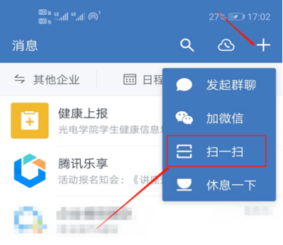 在線上系統預約報名成功后,同學們須在入場就坐后進行現場簽到,屆時同學們可打開企業微信“掃一掃”,掃描二維碼簽到。