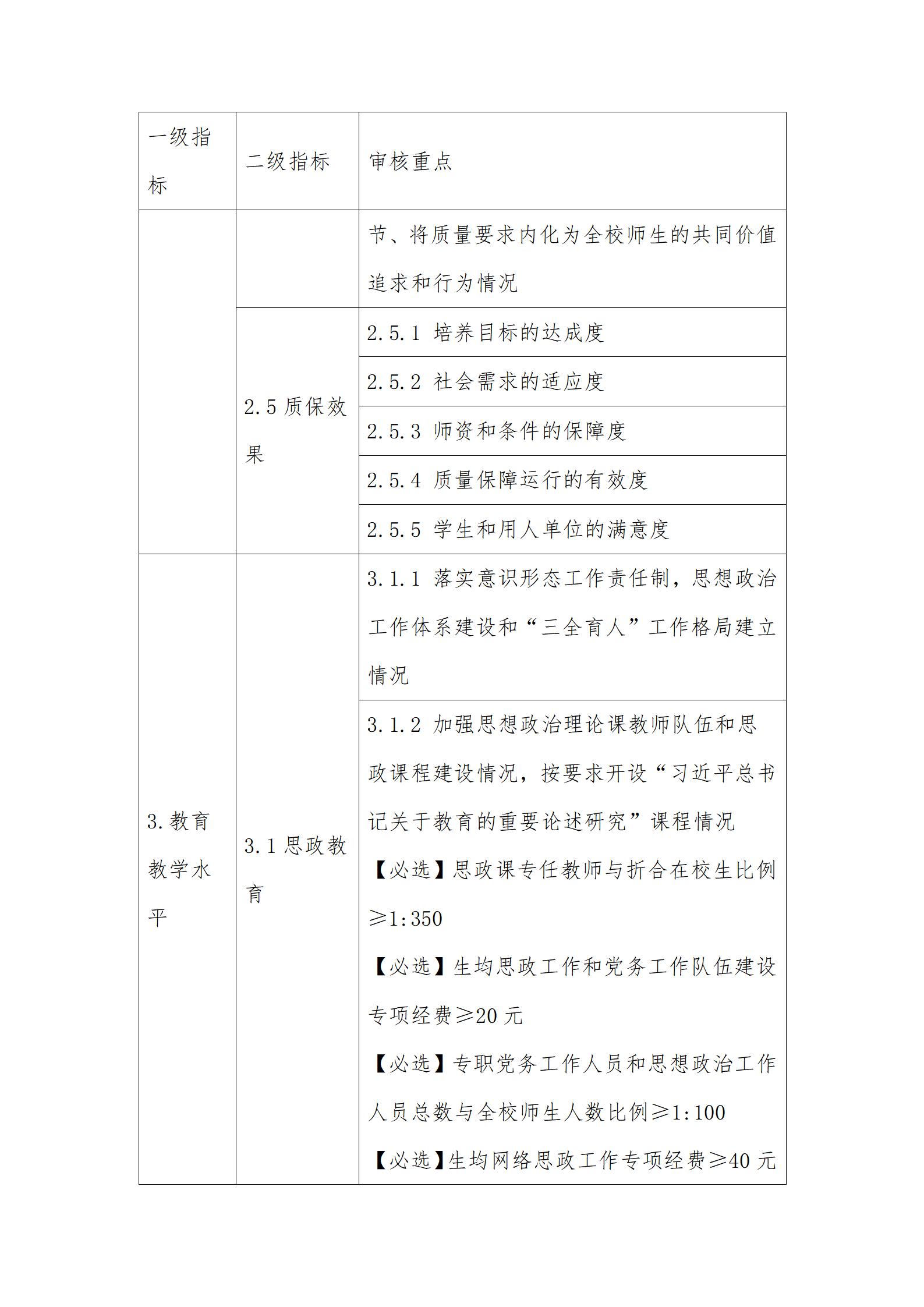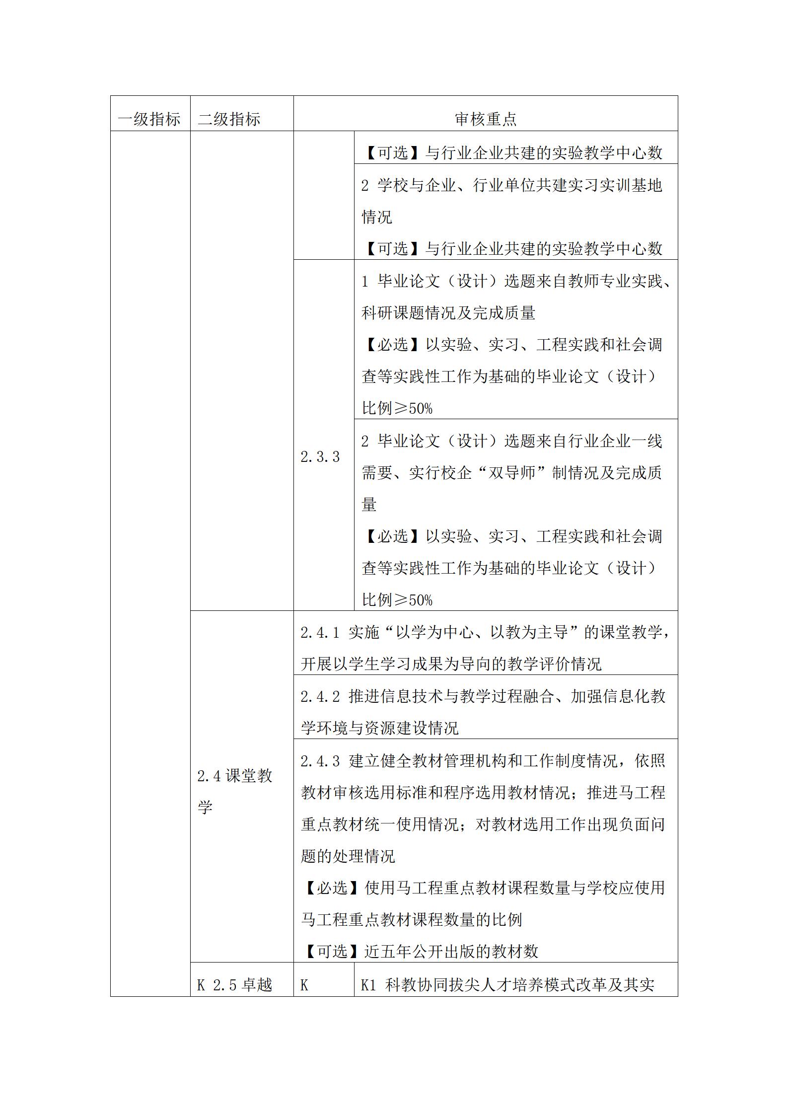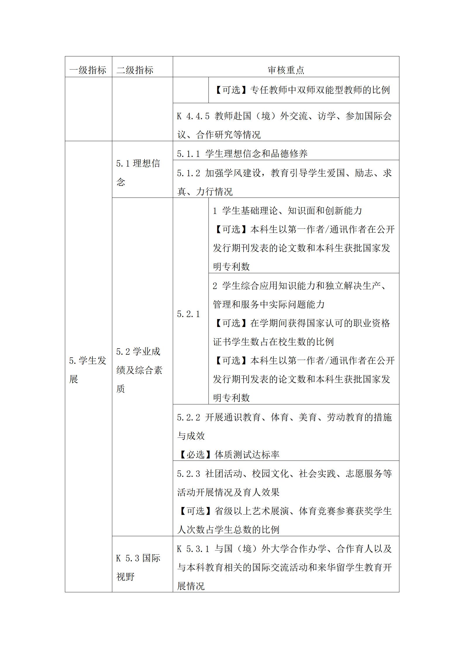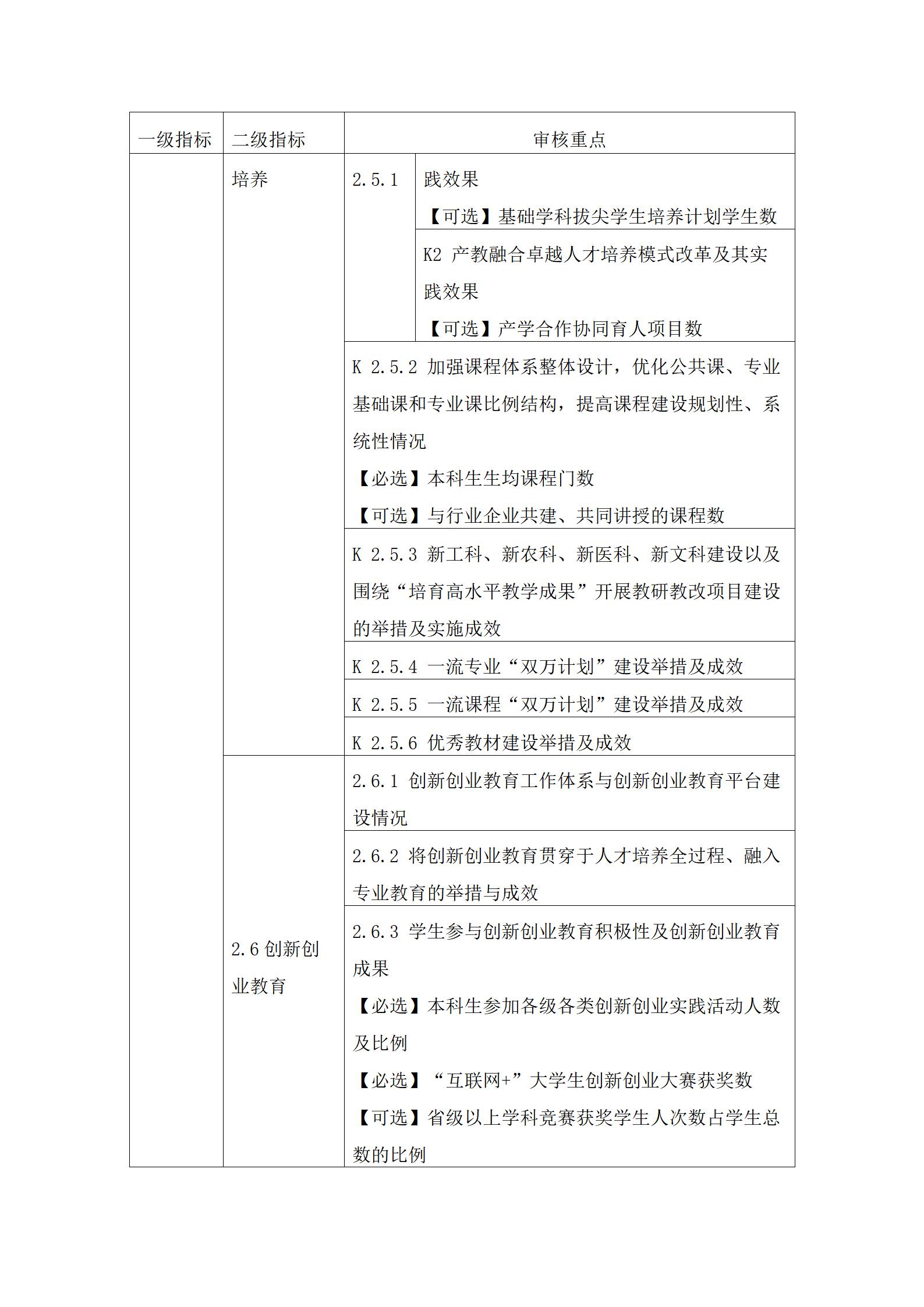 3.審核重點(diǎn)中定量指標(biāo)的具體要求可參考國家相關(guān)標(biāo)準(zhǔn)。其中,【必選】是指該定量指標(biāo)學(xué)校必須選擇;【可選】是指該定量指標(biāo)學(xué)??篩葑隕矸⒄剮枰褪導(dǎo)是榭鱟災(zāi)餮≡裰遼?項。