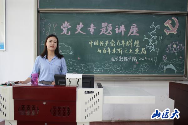 為深入貫徹落實習近平總書記在黨史學習教育動員大會上的重要講話精神,形成全體師生自覺學習黨史的良好氛圍,4月14日下午和17日晚,醫學影像學院分別于中都校區慎思樓C103教室和迎澤校區第16教室組織開展了黨史學習教育專題輔導,邀請馬克思主義學院教師、醫學影像學院2019級醫學影像技術專業輔導員李慧慧擔任主講。2016級醫學影像學專業(線上和線下)、2017級醫學影像學和醫學影像技術專業、2018級醫學影像技術專業、2019級醫學影像學專業、2020級醫學影像技術專業全體學生及輔導員參加了學習。