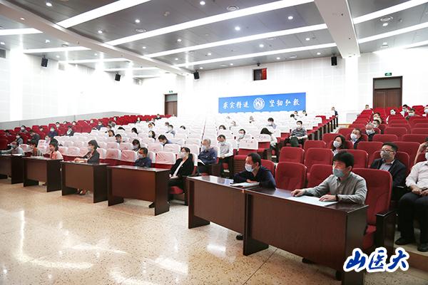 5月14日下午,我校召開2020年度全面從嚴治黨工作會議,深入學習貫徹習近平總書記在中央紀委四次全會上的重要講話及全會精神、省紀委十一屆六次全會和2020年度全省教育系統全面從嚴治黨工作會議精神,回顧總結學校2019年全面從嚴治黨工作,安排部署2020年工作。根據疫情防控需要,大會以視頻會議形式召開,主會場設在中都校區報告廳,基礎報告廳、迎澤校區第一會議室、第一醫院會場、第二醫院分會場、口腔醫院分會場等5個分會場以音視頻連線方式召開。校領導、全校副處級以上干部參加了會議。校黨委書記張俊龍在會上講話,校黨委常委、紀委書記黨志峰主持會議。