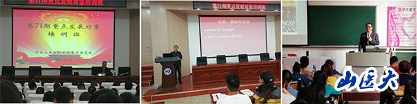 本次培訓精心安排課程內容,科學設計培訓形式,以專題輔導與個人自學相結合,專家講座與觀看視頻資料相結合,常規考核與閉卷考試相結合的方式進行。培訓期間邀請省計生協會專職副會長李汝德教授、我校人文社會科學學院院長王志中教授、管理學院院長程景民教授分別做了《中國共產黨章程》解讀、中國共產黨97年歷史及其啟示、努力做一個堅定的共產主義戰士等專題講座。集中學習了習近平總書記在北京大學師生座談會上的講話、習近平總書記在紀念馬克思誕辰200周年大會上的重要講話,觀看了《紅船精神》、《榜樣》和《頂天立地談信仰》等視頻資料。10日晚,培訓班進行了結業考試。