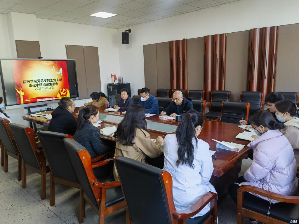 3月13日下午,法醫(yī)學(xué)院黨總支教工黨支部毒化黨小組在學(xué)院會議室召開2022年度組織生活會,學(xué)校督導(dǎo)組董海濤一行二人蒞臨指導(dǎo)。會議由黨支部書記梁新華主持。