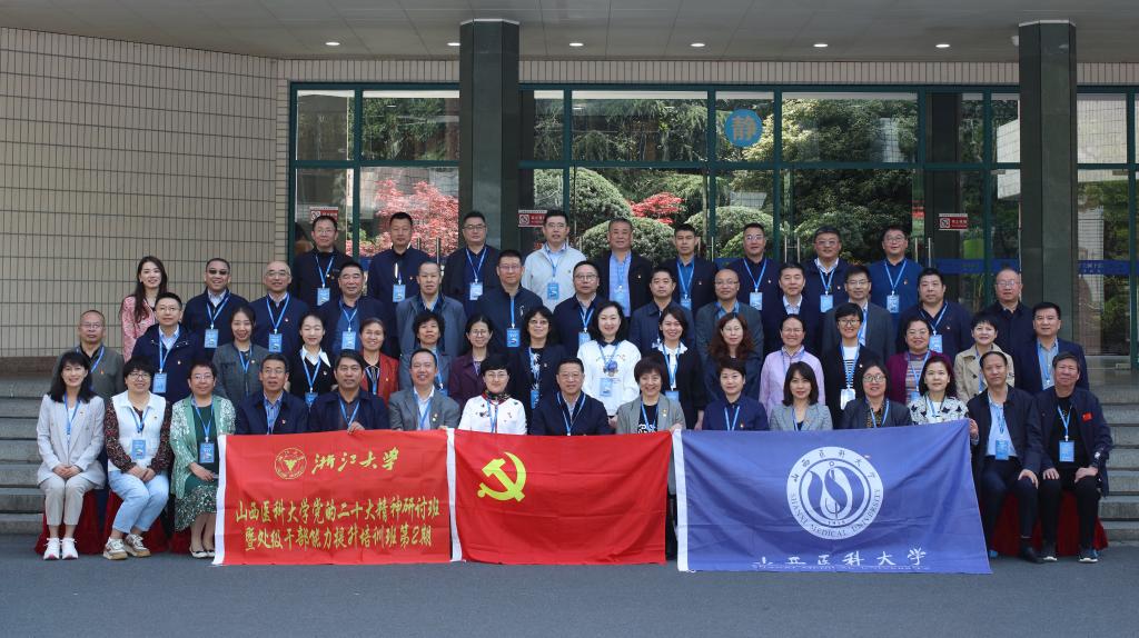 4月10日上午,我校黨的二十大精神研討班第2期暨處級干部能力提升培訓班在浙江大學華家池校區進行首場講座。校黨委副書記王宏偉帶班,講座由浙江大學醫學院教授、博士生導師朱永平主講,全體學員共51人參加學習。