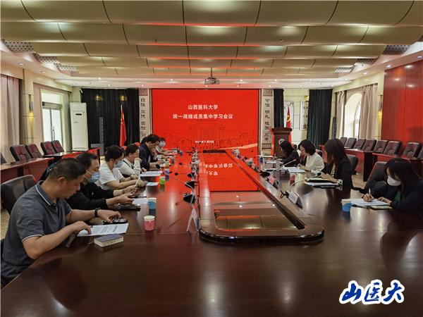 5月26日下午,我校統戰部在迎澤校區第一會議室召開統一戰線成員集中學習會議。校黨委常委、統戰部部長牛琪,第一醫院、第二醫院負責統戰工作的同志,我校6個民主黨派和2個統戰團體負責人參加了本次集中學習會議。